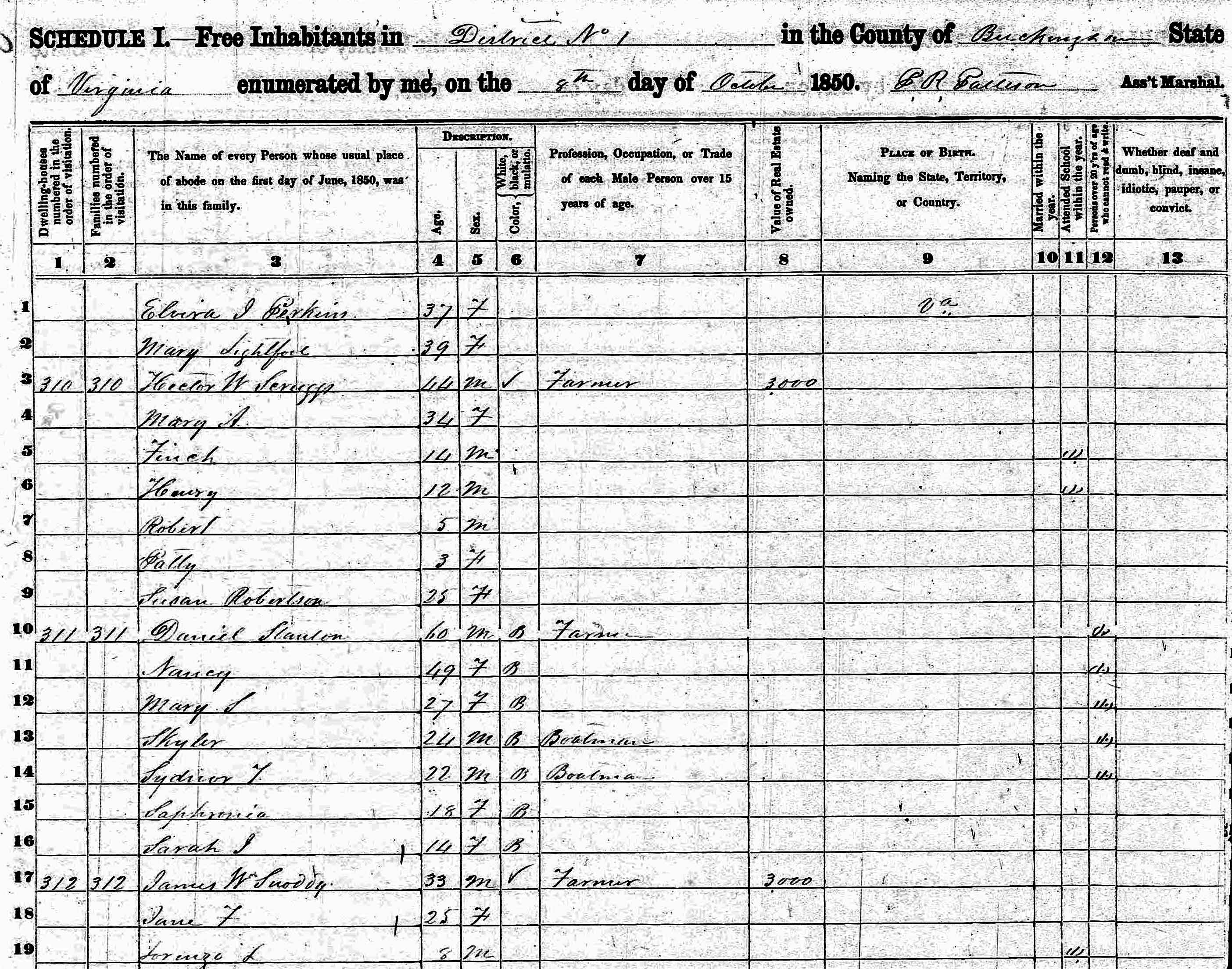 In the Gazetteer of the United States (1854), Thomas Baldwin very simply states the population of Buckingham County that year: “Population, 13,837, of whom 5676 were free, and 8161, slaves.”