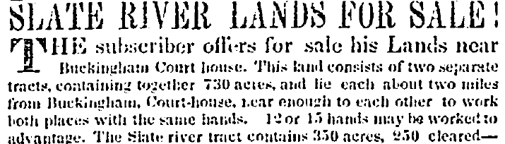 Buckingham Notables: The Austin Family, Part V » Slate River Land For Sale