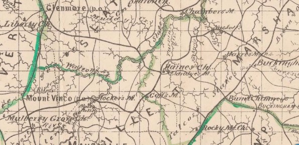 The family then moved up to a grant of land (1,570 acres) described as lying on Walton Fork of Slate River (Buckingham had not then been cut off from Albemarle) the grant vividly described in the patent is still treasured at Mt. Pleasant as some of the following extracts show: