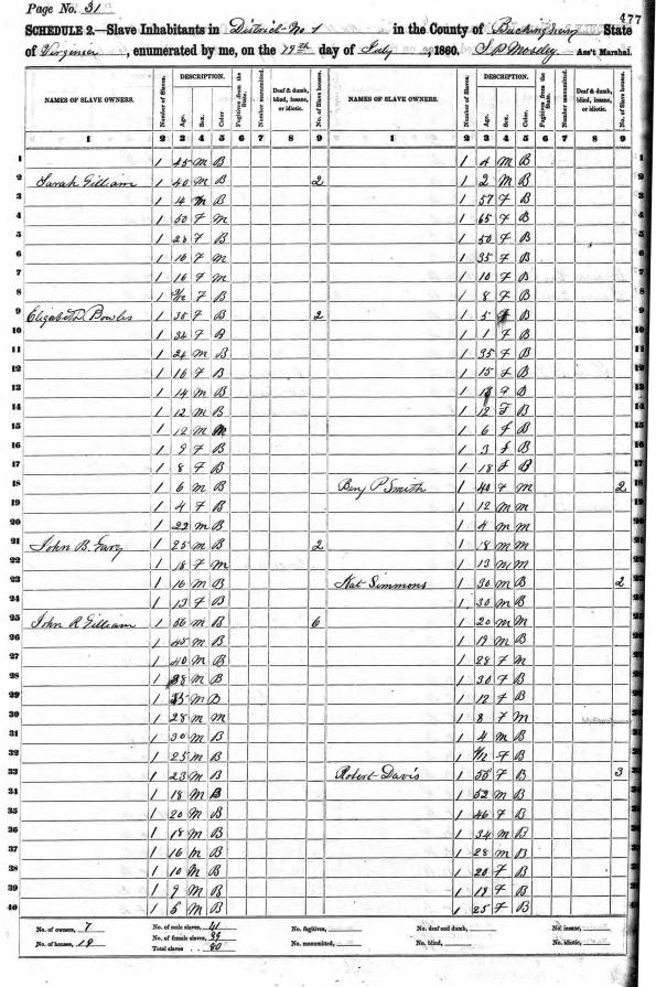Reconstruction in Buckingham County, Part VI » SRR_Reconstruction_6_1860_slave-census_Gilliam