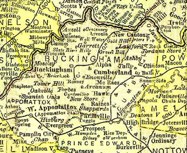 Post Offices, 1895. Buckingham County, Virginia.