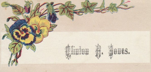 When L. D. Jones ordered samples of calling cards from Murray & Co. in New Jersey, he received a variety of images and type faces. The images did not necessarily match the personality or gender of his child’s name printed on the card. It seems highly unlikely that Clinton Jones would have chosen pansies as his signature image.