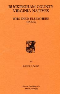 One of Roger G. Ward’s many Buckingham County-related publications: “Buckingham County Virginia Natives Who Died Elsewhere, 1853-1896.”