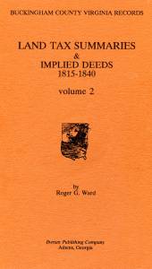 Volume Two in Roger G. Ward’s indispensable series, ” Buckingham County, Virginia: Land Tax Summaries and Implied Deeds, 1815-1840.”