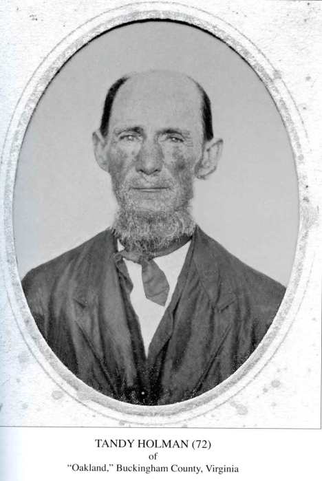 The portion of the house which was thought to have been Tandy Holman’s father’s house is certainly not a part of this home because that house is still standing in its entirety on the original foundation. Tandy Holman’s father was William Holman of “Humanity Hall,” Buckingham County. He died in 1823, leaving the property to his children. They sold it to Col. Elijah Hanes in 1848. The children involved in the sale were Tandy Holman of “Oakland,” the heirs of Elizabeth Hales Holman Ford, William Holman, who was preparing to move to Cumberland County, and Mrs. Virginia (Col. Richard H.) Gilliam of Buckingham. I descend from both of William’s sons.