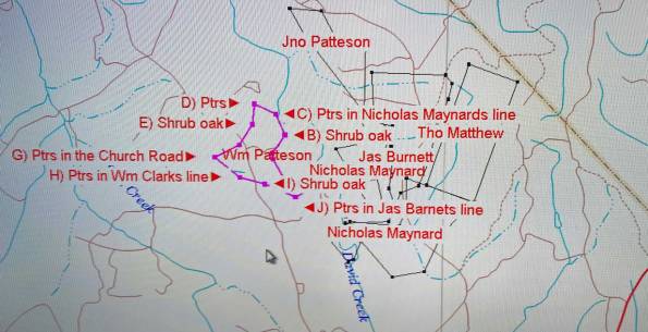 I am very excited about Les Campbell’s mapping! My ancestor John Brown, and his relations Joseph Brown and William Brown had land near the Pattesons, Maynards and Burnettes in the mid to late 1700s. I began a study of all the deed abstracts I could find along the meanders of David’s Creek from 1730-1850, listing all the associated surnames. I also came to the conclusion that their property may have been somewhere along Wildway Road. I am delighted at this validation!!!